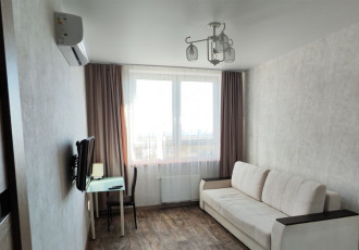 сдается уютная квартира на длительный срок. в квартире выполнен ремонт. просторная комната оборудована шкафами и диваном, а также имеется телевизор. кухня светлая и функциональная, оснащена холодильником, плитой и микроволновкой.санузел совмещенный...
