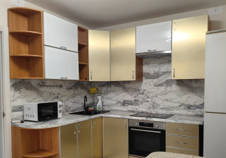 сдается уютная квартира на длительный срок. в квартире выполнен ремонт. просторная комната оборудована шкафами и диваном, а также имеется телевизор. кухня светлая и функциональная, оснащена холодильником, плитой и микроволновкой.санузел совмещенный...