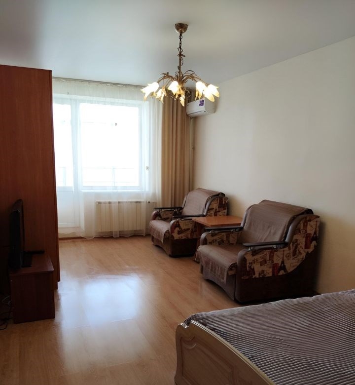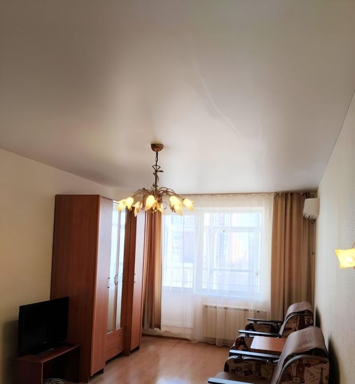 комфортная однокомнатная квартира в центре города. полностью мебелирована, с кухонной техникой, гарнитуром. сдается на длительный срок. в кухнекухонный гарнитур, стол, стулья, диванчик, телевизор, микроволновка, чайник, холодильник. в комнатедвуспальная кровать, два кресла, журнальный столик, шифоньер, кондиционер, телевизор, тумбочка. есть отдельная гардеробная. ванна, душ, стиральная машина, утюг, гладильная доска, сушилка для белья.