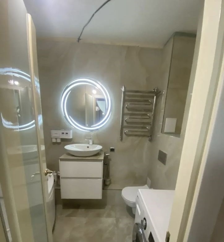 в квартире сделан ремонт на полу кафель и ламинат, двери, поклеены дорогие обои, в ванной комнате полностью поменяна сантехника, кафель 60120, инсталляция. оставляем кухонный гарнитур, духовую печь, микроволновую печь, в прихожей большую дорогую встроенную гардеробную, встроенную стенку в комнате, кондиционер, стиральную машинку, раковину с тумбой, зеркало с подсветкой. в районе есть много разных магазинов, кафе, тренажерный зал, детских площадок, школа, садик и детские кружки, рядом лес и озера. красивая инфраструктура, транспортная развязка.
