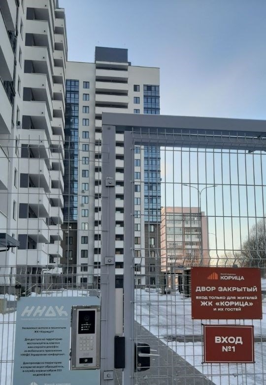 новый жк корица рядом с фантастикой 715,эт. 4 квартиры на этаже, 2 лифта отис, безбарьерный доступ. в квартире раздельный санузел, гардеробная 4м.кв. 2 лоджии. ремонт свежий, качественный сантехника, плитка, ламинат обои под покраску, двери. своя территория с детскойспорт площадкой, зоной отдыха, пропускная система, видеонаблюдение, спортзал для жильцов бесплатно. большой охраняемый паркинг платно и бесплатно один взрослый собственник, полная цена в договоре, чистая продажа. ключи в день сделки.
