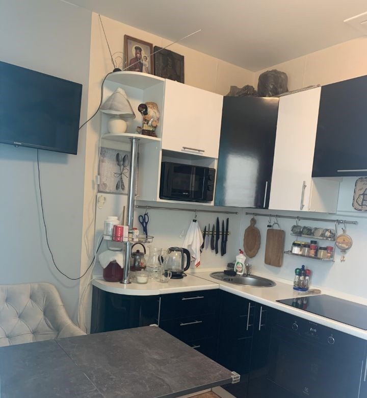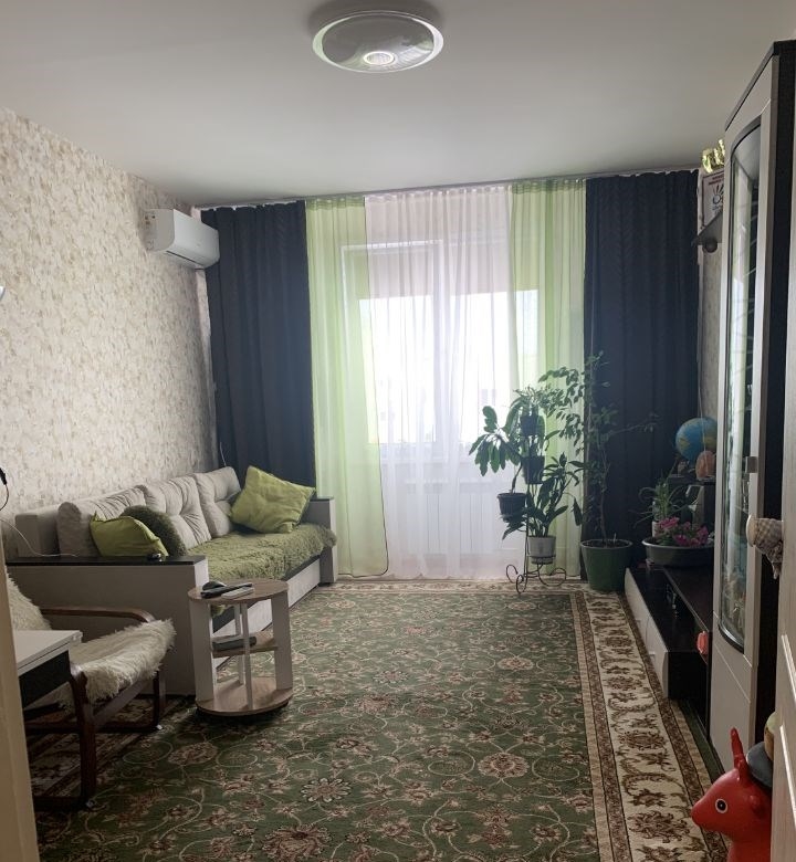 большая, светлая, и очень тёплая квартира, угловая, с соседями не граничит. состояние заходи и живи. сан.узел раздельный. большая прихожая. просторная застеклённая лоджия из кухни. кондиционер остаётся в подарок покупателям. также остаётся кухонный гарнитур и шкаф в прихожей. один взрослый собственник. более 5 лет в собственности. подходит под любой вид расчётов. рядом в шаговой доступности есть всё необходимое для жизни транспортная развязка, все магазины и тц, спорткомплекс, парковки, детские сады и школы.