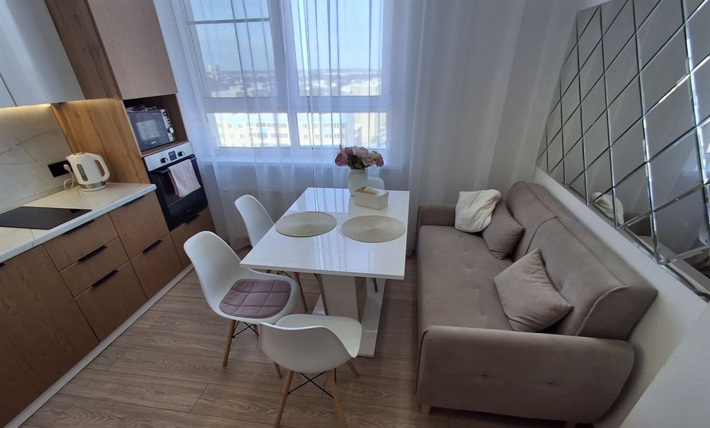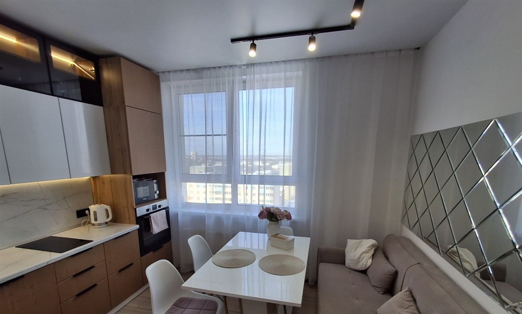 просторная двухкомнатная квартира в доме комфорткласса с современным ремонтом. изолированные комнаты, кухня оборудована встроенной техникой, включая посудомоечную машину, и стильной мебелью. ванная комната совмещенная, оснащена качественной сантехникой и теплым полом. из окон открывается вид на двор с закрытой территорией и спортивной площадкой. дом оснащен двумя пассажирскими лифтами и одним грузовым. на территории предусмотрена парковка за шлагбаумом. квартира в ипотеке.один взрослый собсвенник.